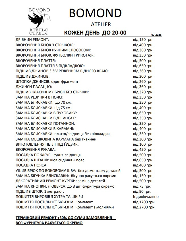 Ательє "Bomond" – це місце, де ваші ідеї стають реальністю, а кожен виріб створюється з любов'ю та увагою до деталей.